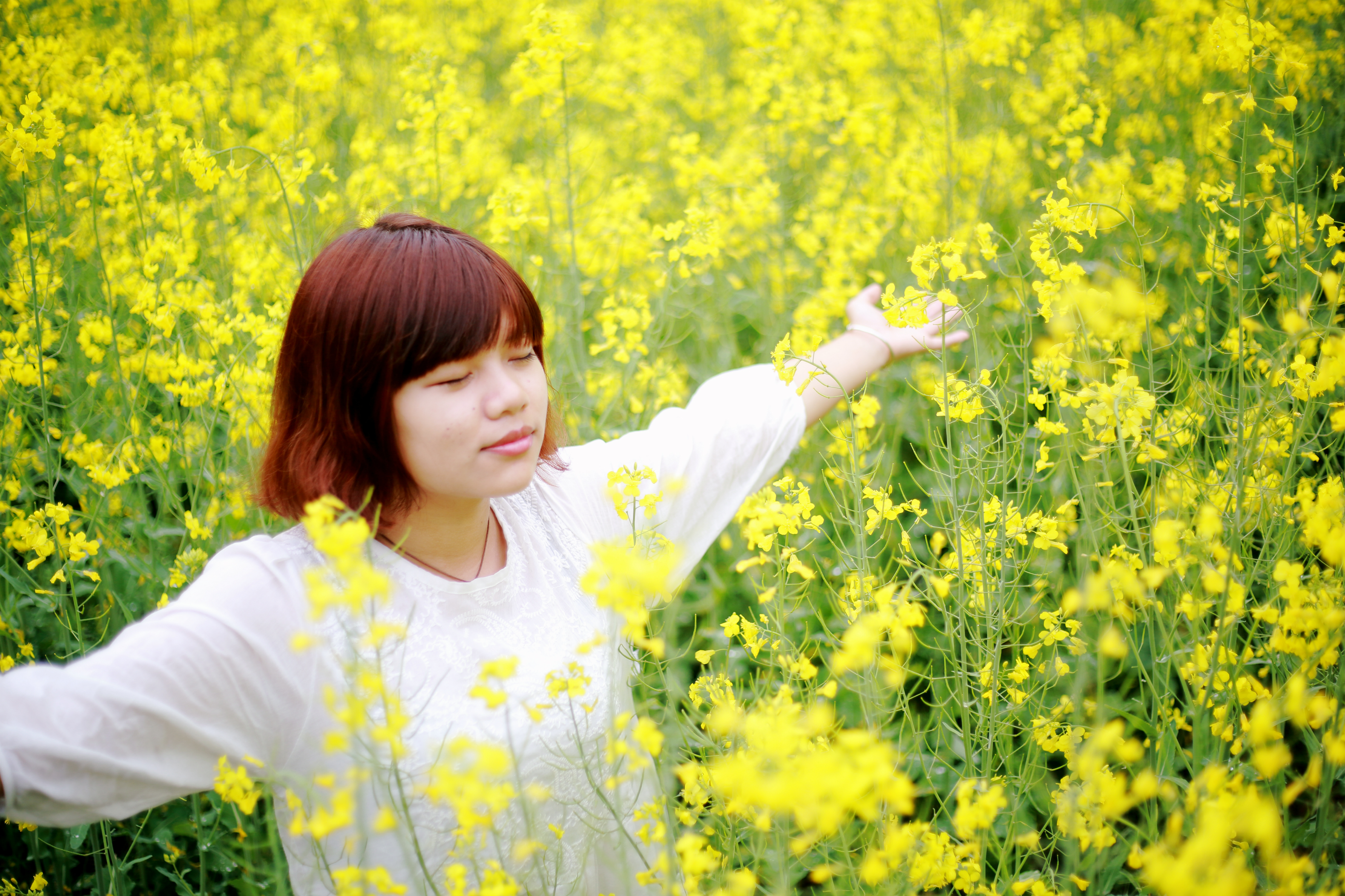 (滿園芬芳,一襲素裳,做一只蜜蜂采蜜花上。)