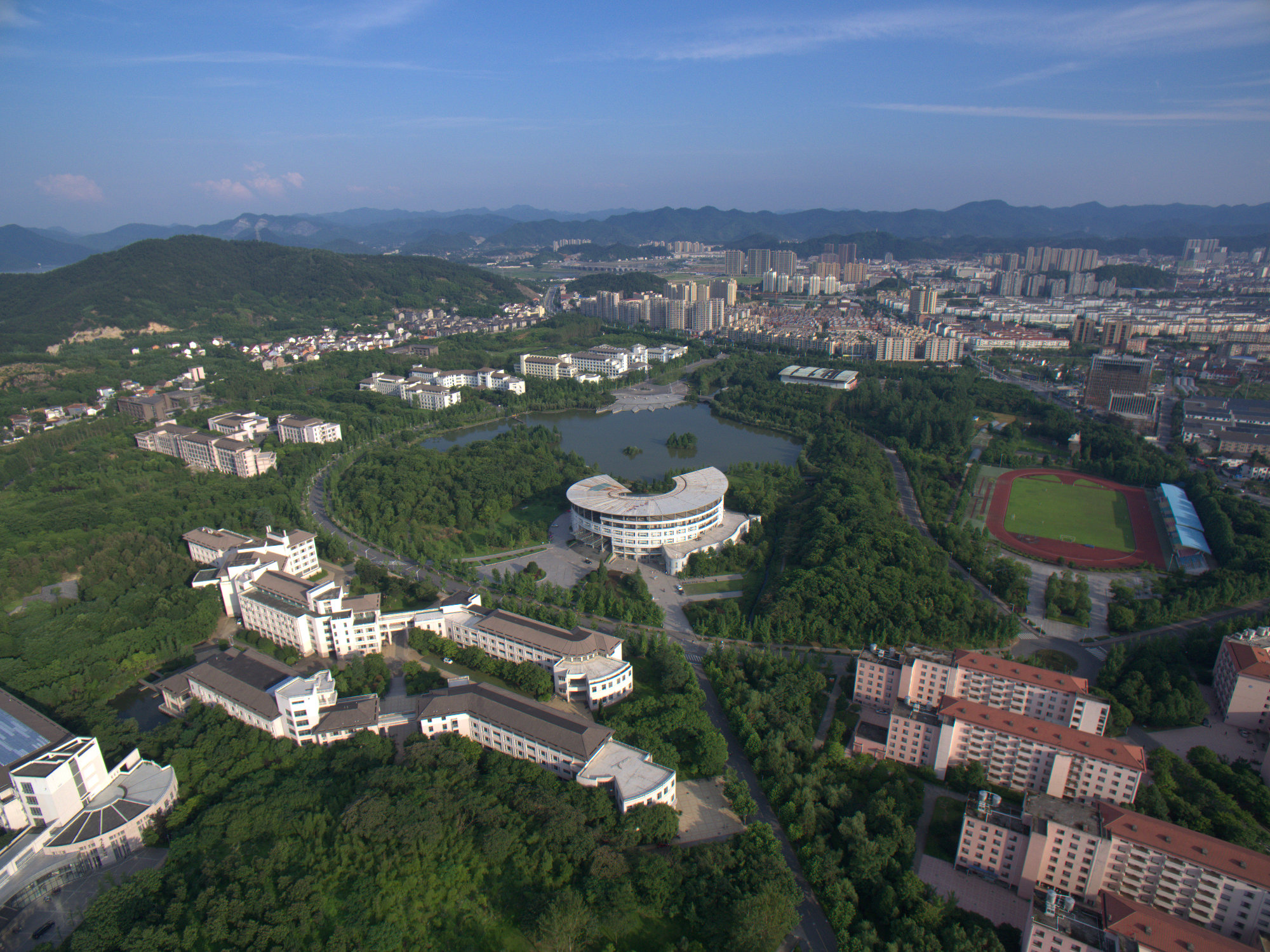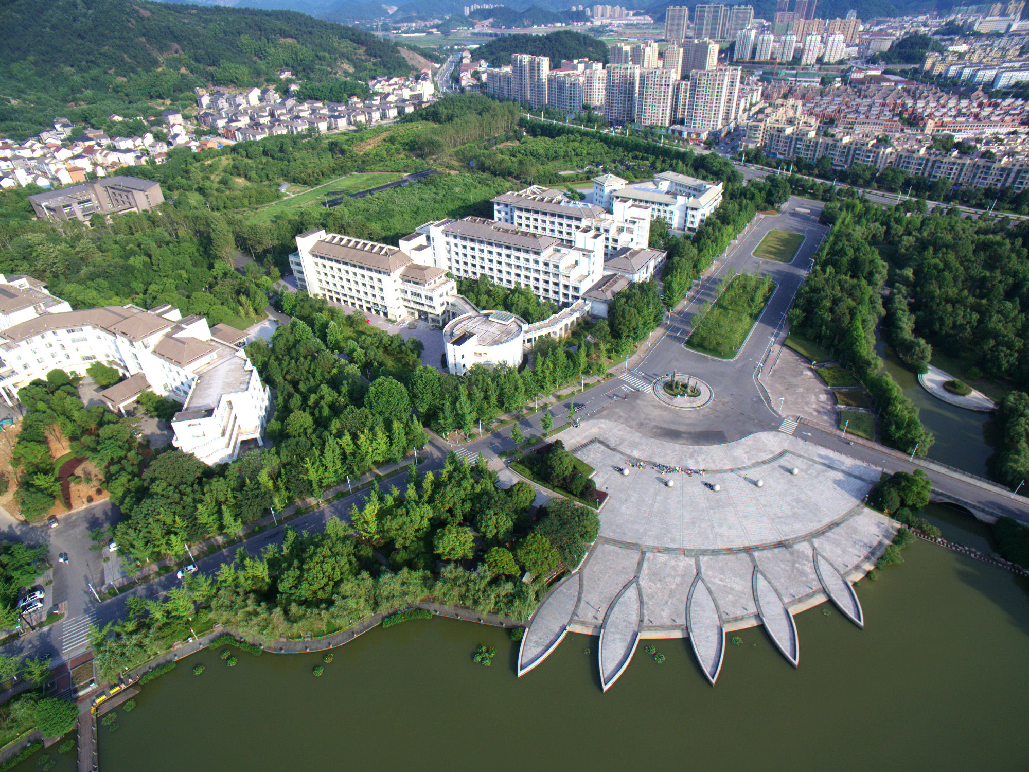 夏季蔥綠與浪漫綻放在校園中,綠樹(shù)、湖水伸展如絲絨,蔓延如翡翠,山在遠(yuǎn)處奔涌。