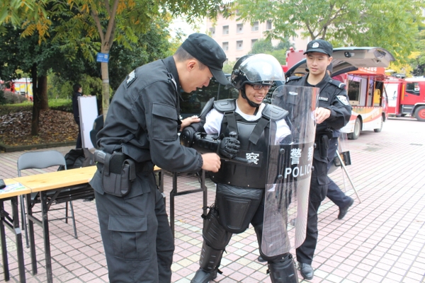 演習結束后,現場人員還一起觀看了治安、交通、消防等安全圖片展和消防、防暴警用裝備展,并參與了消防體驗活動。