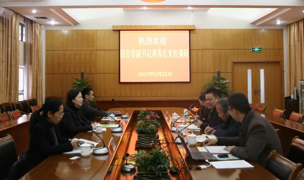2月22日下午,團省委副書記周蘇紅一行來我校調研“同伴”共青團建設,校黨委副書記史永安陪同調研。