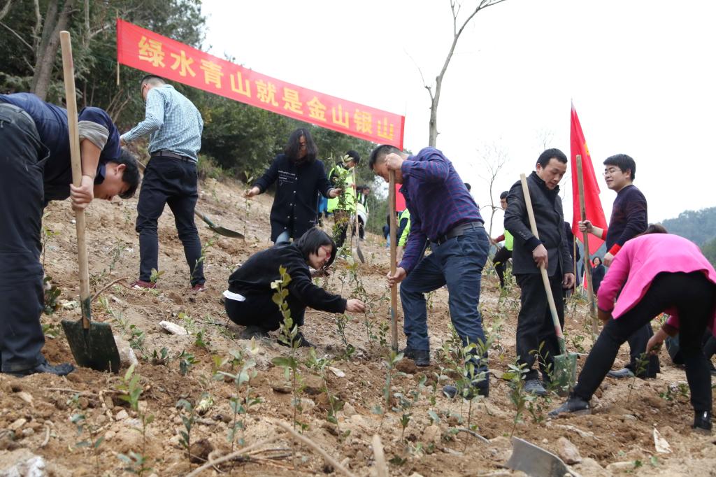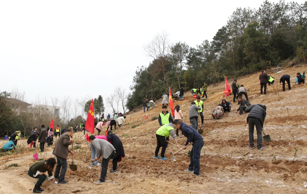 校黨政領導班子成員周國模、方偉、王自勇、鐘平、胡祖吉、童曉暉等與師生代表一起,在東湖校區茗茶園西側區域添種一片新綠。大家揮鍬鏟土,扶苗填坑,踏土夯苗……三五人一組團結協作、滿懷熱情,不到2小時,一萬多株茶樹、50多株福建山櫻花等成排而立。