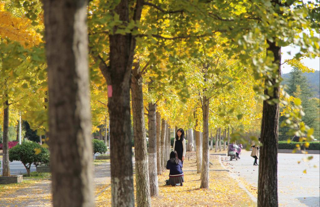 葉子綠了又黃,銀杏換了新妝,分外妖嬈。一番繽紛后,銀杏葉翩然飄落,告示著季節的變化,感悟著時光的荏苒。