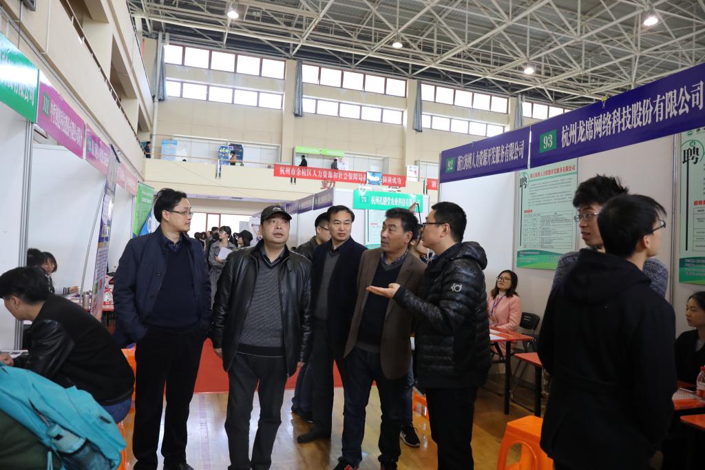 我校黨委書記周國模、浙江省教育廳學生管理處調研員徐建農、浙江省教育發展中心副主任羅萬里分別到場進行了工作指導,并親切與用人單位和畢業生進行了交流。宣傳部、學生處、教務處、校友辦及二級學院學生工作負責人、學科負責人、輔導員等也來到招聘會現場,了解用人單位的招聘情況和同學們的就業意愿。