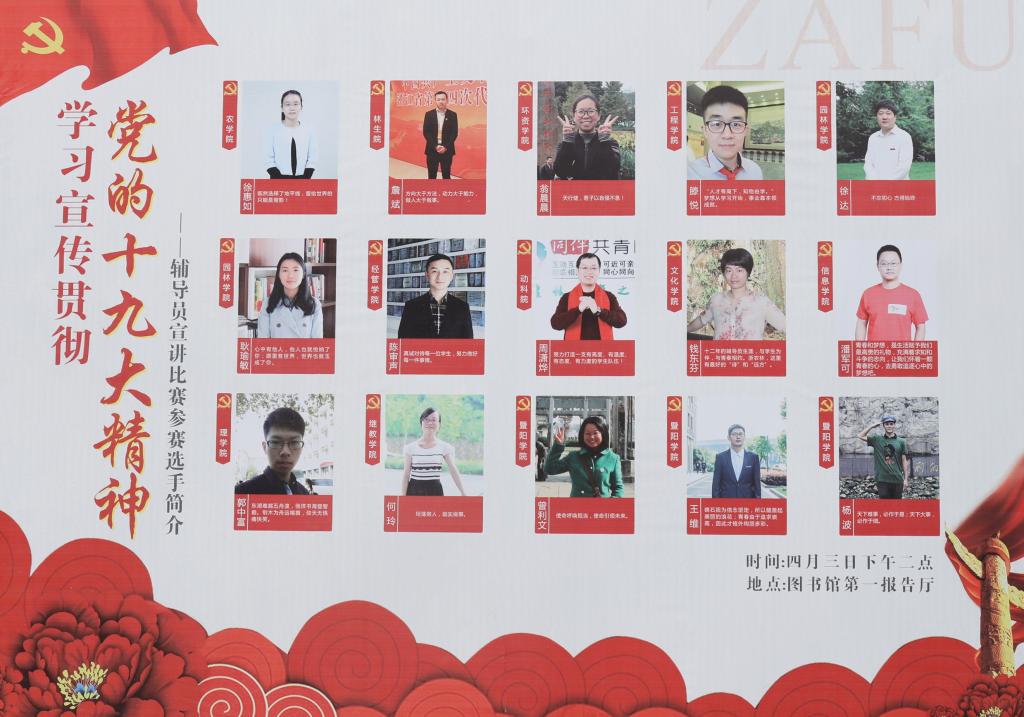 為進一步推進黨的十九大精神學(xué)習(xí)宣傳,用習(xí)近平新時代中國特色社會主義思想武裝頭腦、指導(dǎo)實踐,提升輔導(dǎo)員教育教學(xué)能力,在前期初賽的基礎(chǔ)上,4月3日下午,學(xué)習(xí)宣傳貫徹十九大精神——輔導(dǎo)員宣講比賽在圖書館第一報告廳舉行。校黨委副書記史永安,黨委委員、宣傳部部長胡祖吉出席,學(xué)工部、研工部、團委負(fù)責(zé)人,各學(xué)院分管學(xué)生工作負(fù)責(zé)人、全體輔導(dǎo)員和各學(xué)院學(xué)生代表500余人參加活動。