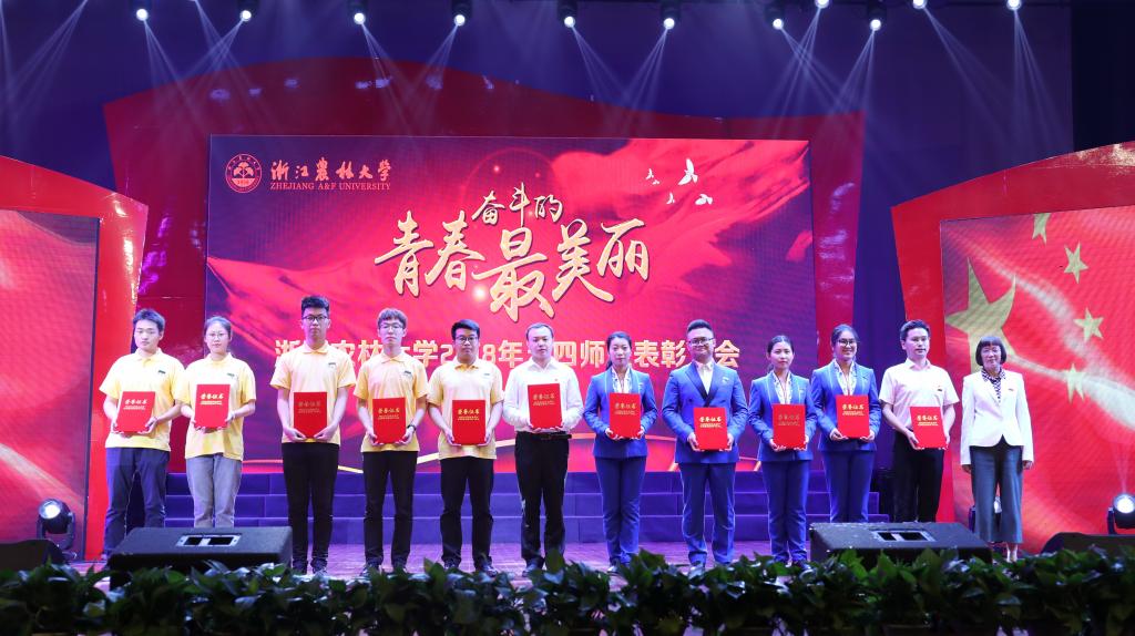 5月4日晚,學(xué)校在東湖校區(qū)影劇院舉行“五四”師生表彰大會(huì)暨青年合唱比賽。校黨委書記周國(guó)模,黨委副書記史永安,副校長(zhǎng)沈月琴,校黨委委員、宣傳部部長(zhǎng)胡祖吉,學(xué)校相關(guān)職能部門負(fù)責(zé)人,各學(xué)院黨政負(fù)責(zé)人,校教學(xué)與學(xué)位指導(dǎo)專門委員會(huì)成員,各二級(jí)學(xué)院分團(tuán)委書記、學(xué)生會(huì)秘書長(zhǎng)、全體輔導(dǎo)員,獲獎(jiǎng)先進(jìn)集體和個(gè)人,各學(xué)院團(tuán)員青年代表等千余人參加此次大會(huì)。