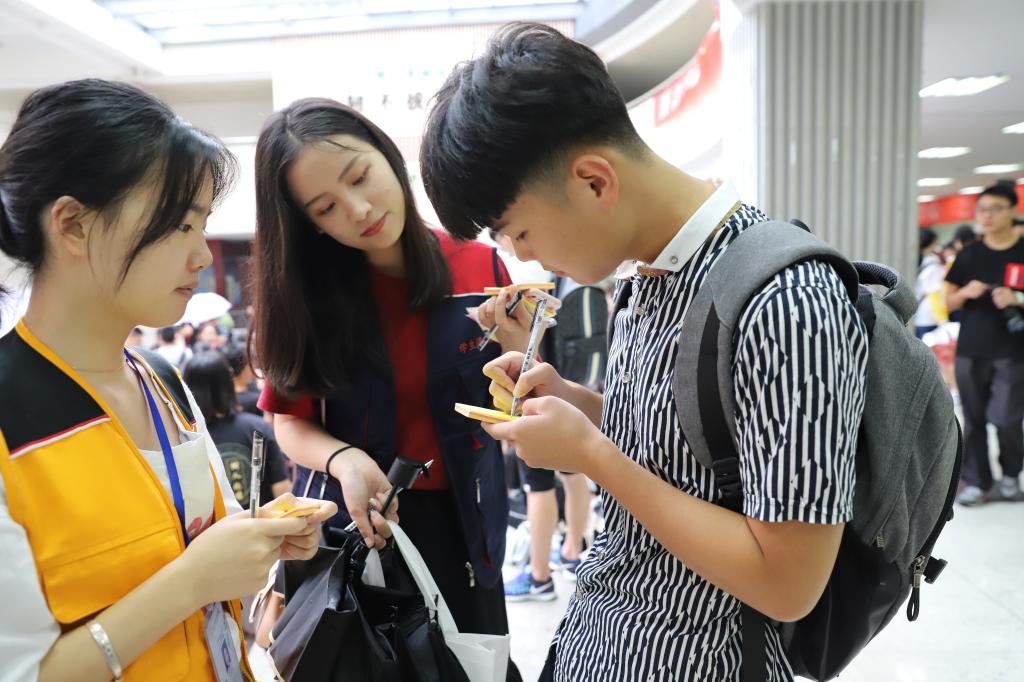 每一個學院都為新生們準備了最好的入學禮物:農(nóng)學院給全校新生們準備了精心培育的多肉植物;工程學院準備了精美的竹制書簽;藝術(shù)學院現(xiàn)場為新生拍攝打印全家福,并贈送卡套;園林學院特意為新生制作了環(huán)保帆布袋……