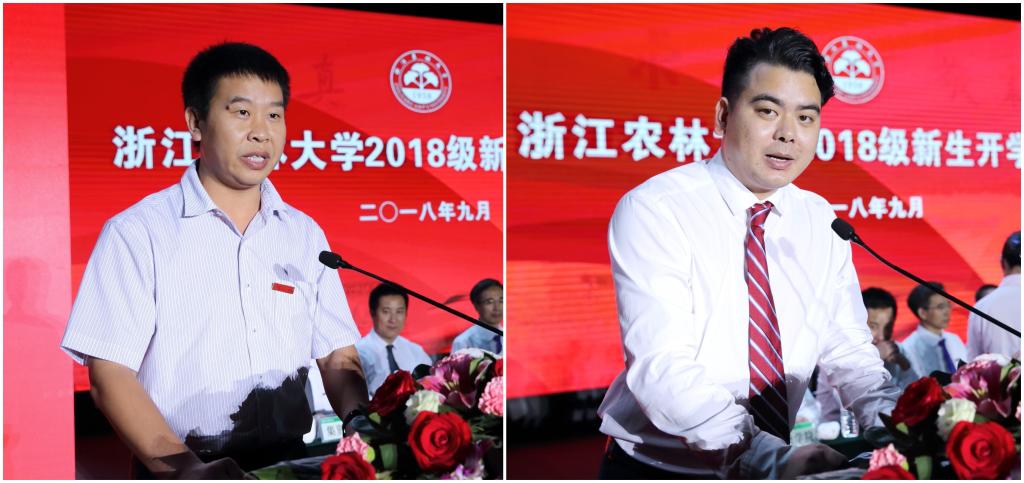 教師代表、工程學院孫慶豐老師,校友代表、農業與食品科學學院植物保護專業2010屆畢業生林高昂,在校生代表、園林學院研究生施健健同學,2018級新生代表、文法學院本科新生舒一諾同學分別發言。