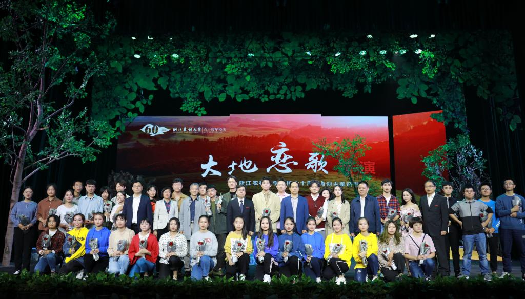 六十年弦歌薪火傳承,一甲子征程前赴后繼。10月18日晚,我校大型原創(chuàng)校慶劇《大地戀歌》在東湖校區(qū)活動中心影劇院盛大首演。該劇由校大學(xué)生梵風(fēng)話劇社演繹,生動再現(xiàn)了幾代農(nóng)林人傳承學(xué)校精神,扎根農(nóng)村基層、踐行“兩山”理念、服務(wù)精準(zhǔn)扶貧的感人故事,展現(xiàn)了學(xué)校一甲子的精神積淀和文化底蘊,為迎接浙江農(nóng)林大學(xué)60周年獻(xiàn)上一份厚禮。