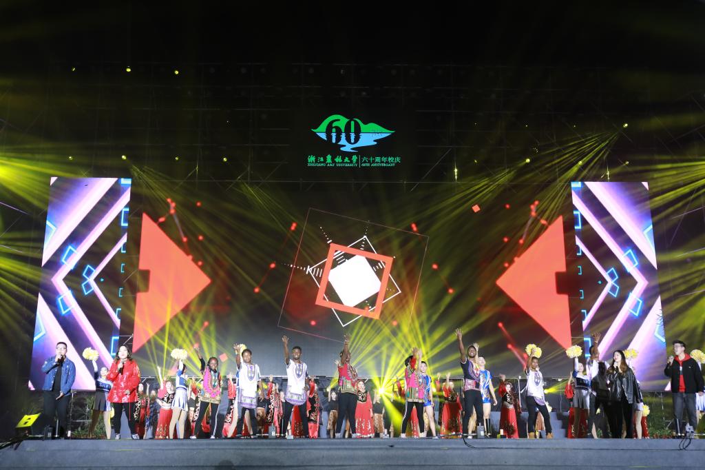 六秩譜華章,聚力再啟航。10月20日晚7點(diǎn)整,“‘親山戀水’——浙江農(nóng)林大學(xué)建校60周年文藝晚會(huì)”在東湖校區(qū)如期舉行。校黨政班子成員、全體中層干部以及校友代表、師生代表、社會(huì)各界嘉賓近萬(wàn)人觀看了演出。