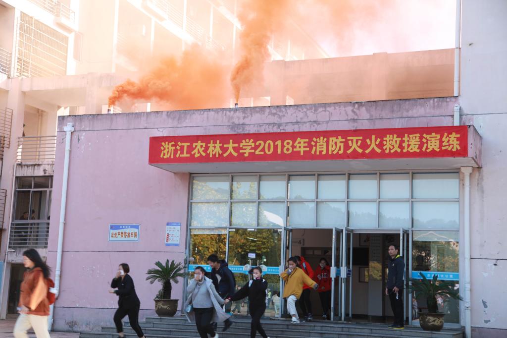 本次演練由校綜治委、臨安區(qū)消安委主辦。臨安區(qū)消防官兵、浙江農(nóng)林大學(xué)微型消防站成員、后勤宿管員、志愿消防隊(duì)員、各學(xué)院消防責(zé)任人及師生代表共計(jì)500余人參加了活動(dòng)。