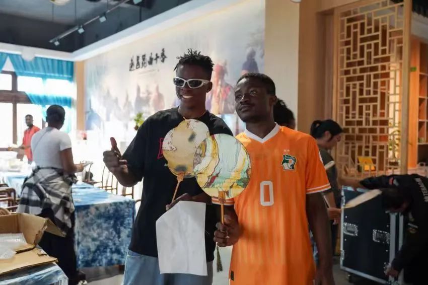 留學(xué)生們還體驗(yàn)了漂流漆紙扇子,指尖飛舞、扇面輕旋……繪制時(shí),色彩在扇面“舞動(dòng)”留下的痕跡,在這一刻被永恒捕捉,凝固于扇面之上,成為一道穿越時(shí)光的美景,待漆干透,一把獨(dú)一無二的漆扇就完成了。