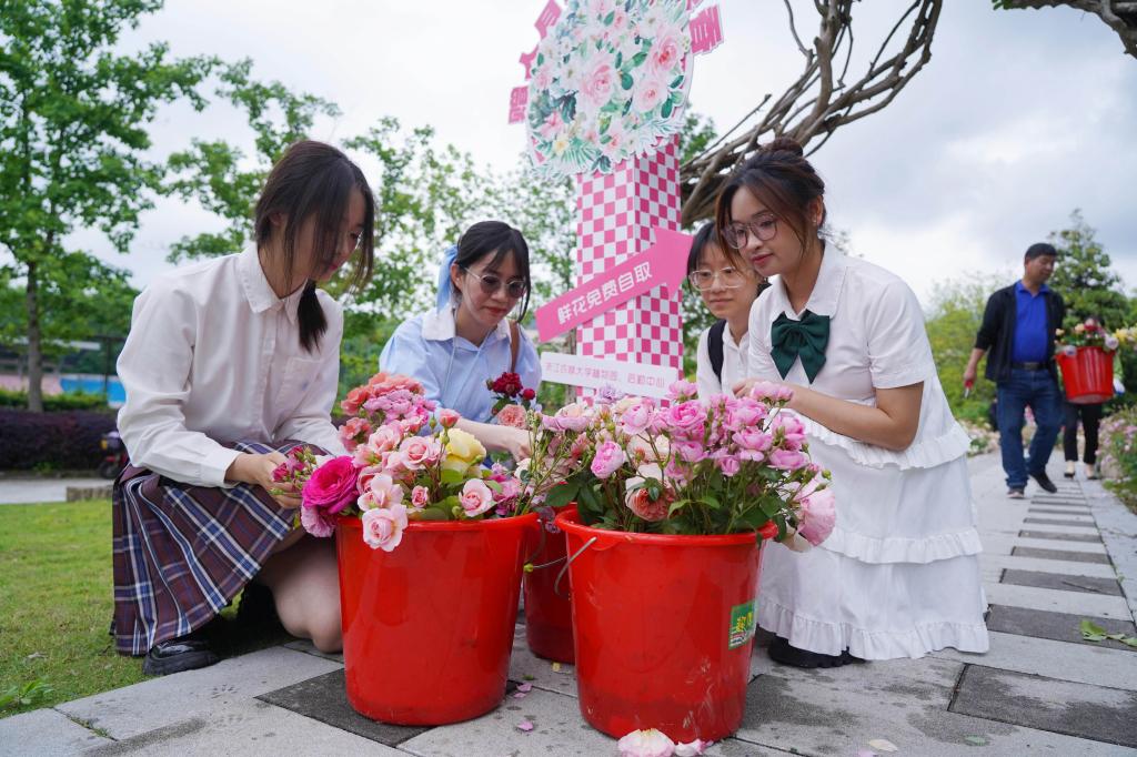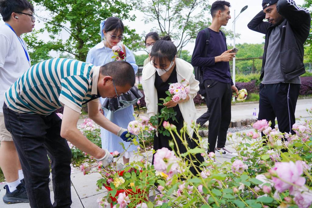 “平時(shí)每天上課路上,都會(huì)經(jīng)過‘余香’園。園里的月季美美地盛開,給我們帶來一天的好心情。園林工人將帶有月季花苞的枝條贈(zèng)送給師生,真是太棒了。這是校園里獨(dú)有的一種浪漫。不僅美化校園,也能美化我們的寢室和心靈。”大二學(xué)生小周,挑選了幾枝月季,準(zhǔn)備做成插花養(yǎng)在寢室里。