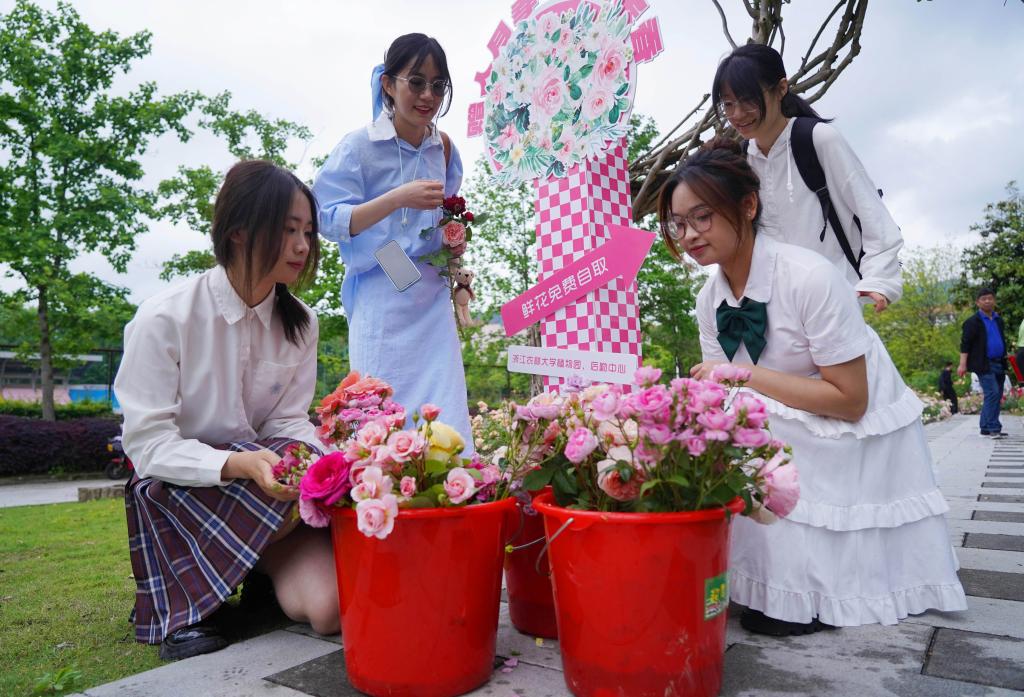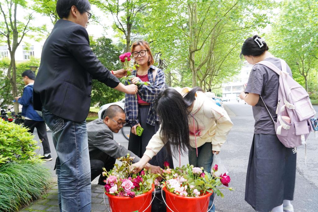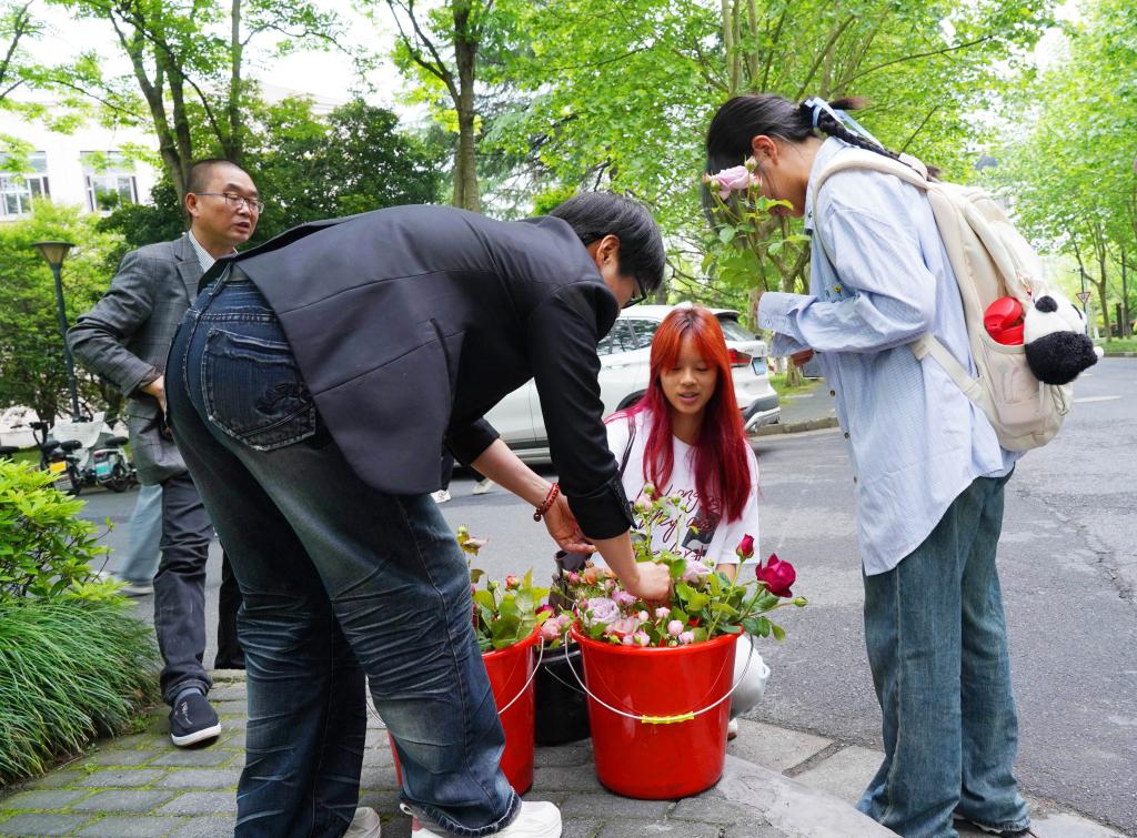 中國教育在線:贈(zèng)你獨(dú)有的“余香” 浙農(nóng)林大園林工人把修剪下的月季送給師生