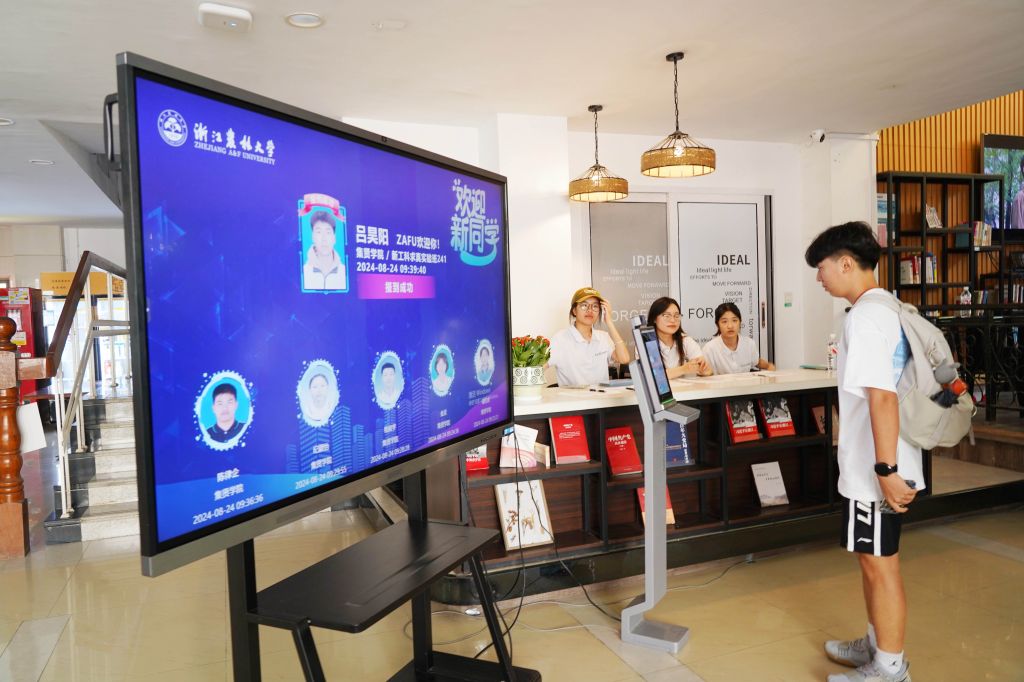 8月24日,浙江農林大學集賢學院,2024級學生通過刷臉注冊完成報到手續。