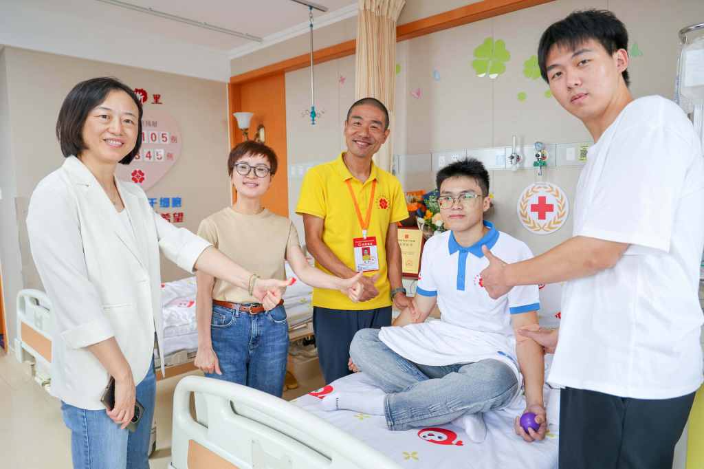 浙江農林大學的老師和紅十字會、醫院的醫生護士,也陪伴在余濤的身邊。“整個過程都很安心的,所有的注意事項工作人員都會非常細致地跟我講清楚。雖然感覺有一點疲憊,但是學校和老師都很關心我,囑咐我一定要先休息好,我覺得非常感動。”余濤說。