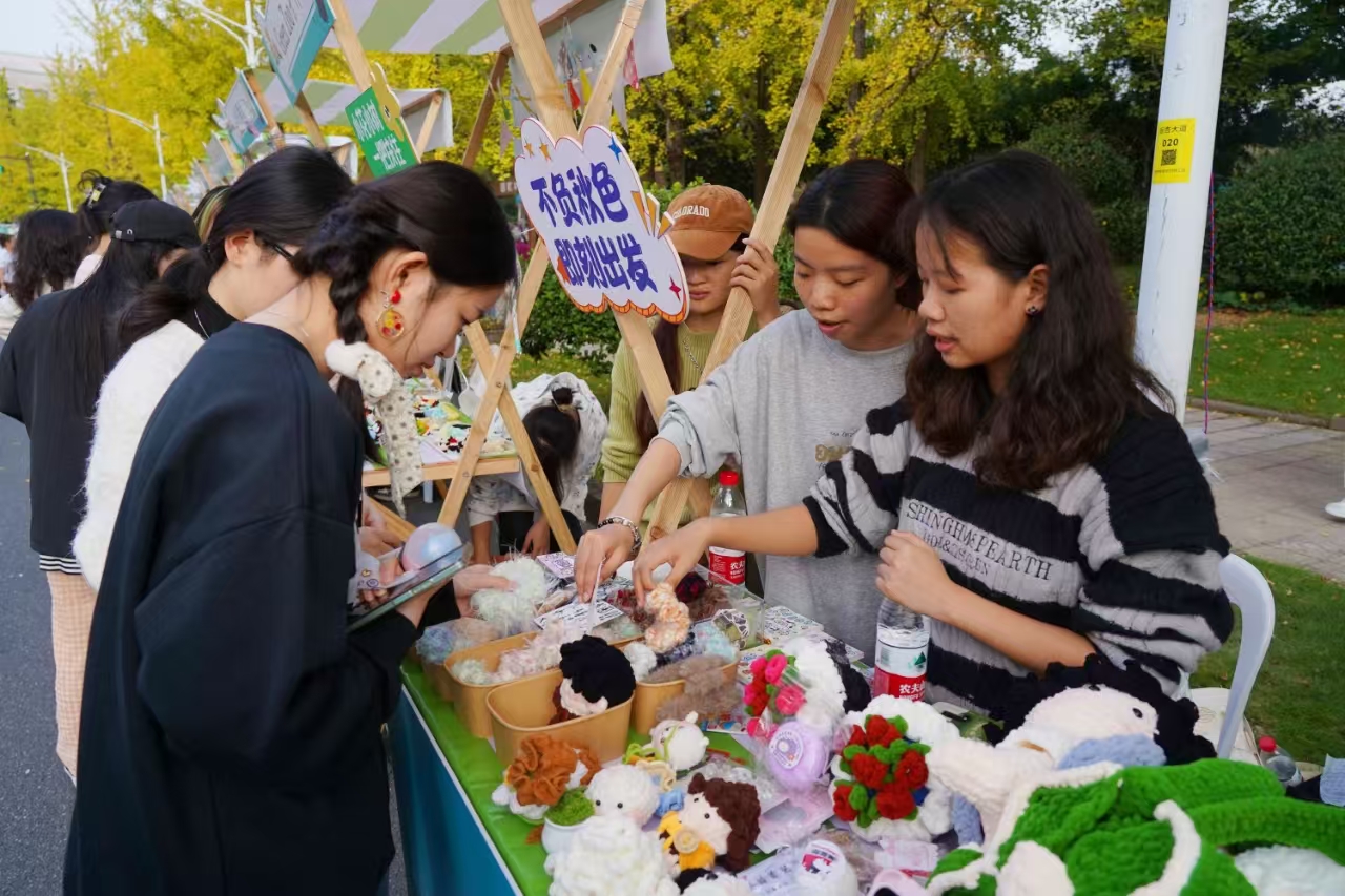 生態(tài)嘉年華期間,浙江農(nóng)林大學(xué)校園處處都是生態(tài)課堂。立體人造生態(tài)系統(tǒng)、寵物義診、多肉養(yǎng)殖展示、玉米手作工藝品、千島湖魚肉小籠包、山地林下仿野生靈芝三葉青、現(xiàn)烤現(xiàn)賣的鮮花罐罐奶茶、“浙西雪鄉(xiāng)”高山蔬菜基地種植的高山蔬菜、鄉(xiāng)村景觀VR自行車、火山爆發(fā)小實驗、火線沖擊電碰迷宮、神筆馬良3D打印筆、虛擬現(xiàn)實射擊樂園、閃電魔法球、AR射箭體驗…浙江農(nóng)林大學(xué)東湖校區(qū)數(shù)百米長的銀杏大道上,7個板塊的166個生態(tài)展位的市集活動,內(nèi)容豐富、形式多樣,限定24小時的嘉年華活動吸引了大家浸潤式體驗。
