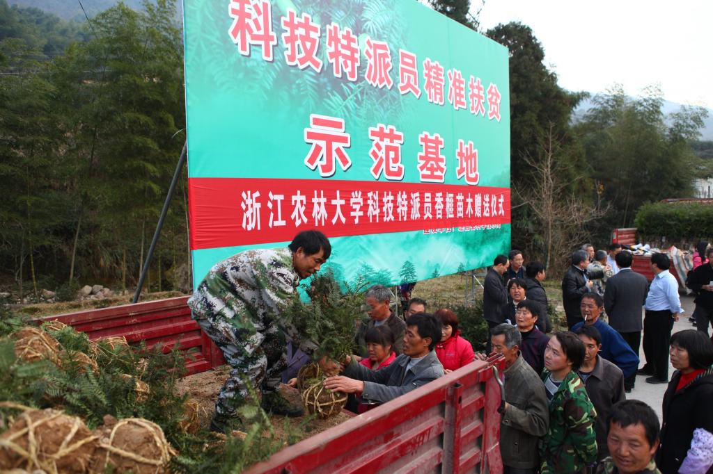 在浙江省淳安縣大下姜,香榧團隊積極推廣香榧豐產栽培技術,指導當地百姓引進香榧新品種3個、推廣新技術5項,新發展香榧造林面積800多畝,建立示范基地400余畝,香榧從畝產不到300斤增加到800斤左右……在浙江農林大學香榧團隊的技術支撐下,如今浙江省香榧種植面積達100萬畝,年產量提升至1.6萬噸,產值提升至60億元。香榧種植已經成為浙江省農業增效、山區林農增收的重要產業之一。