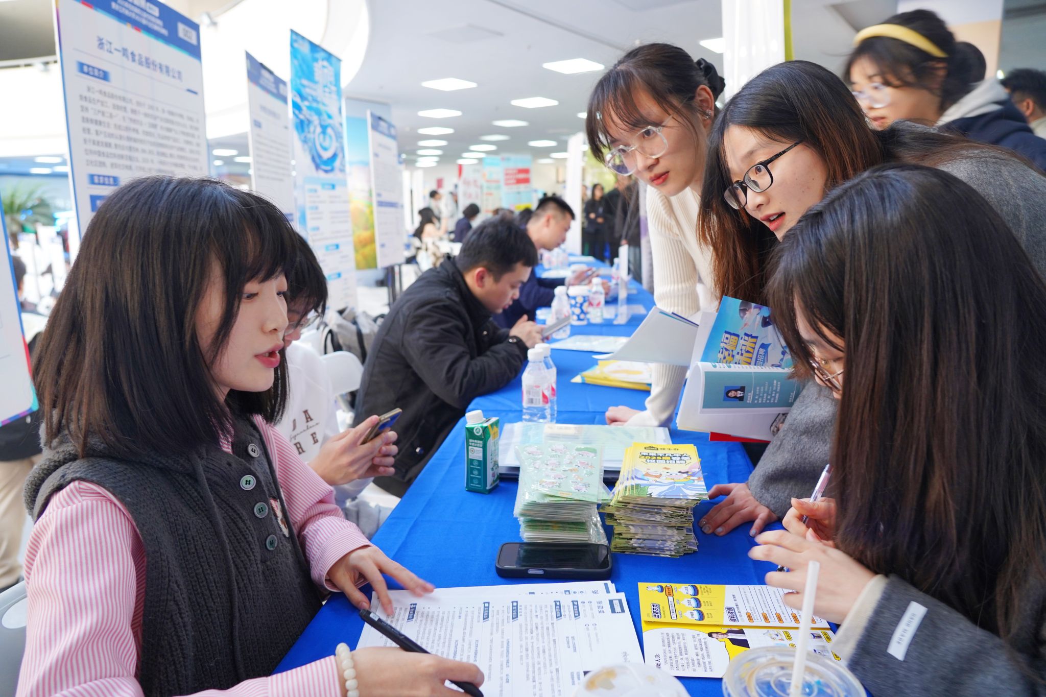 杭州一牛奶品牌的招聘人員表示,去年也參加過不少高校的招聘會,當時很多應屆畢業生都在等考研、考公務員成績,所以咨詢工作環境、收入待遇的多,真正簽約的很少。現在離畢業時間越來越近了,畢業生的求職意愿也更強了,不到1小時,自己已經收到了10多份簡歷。