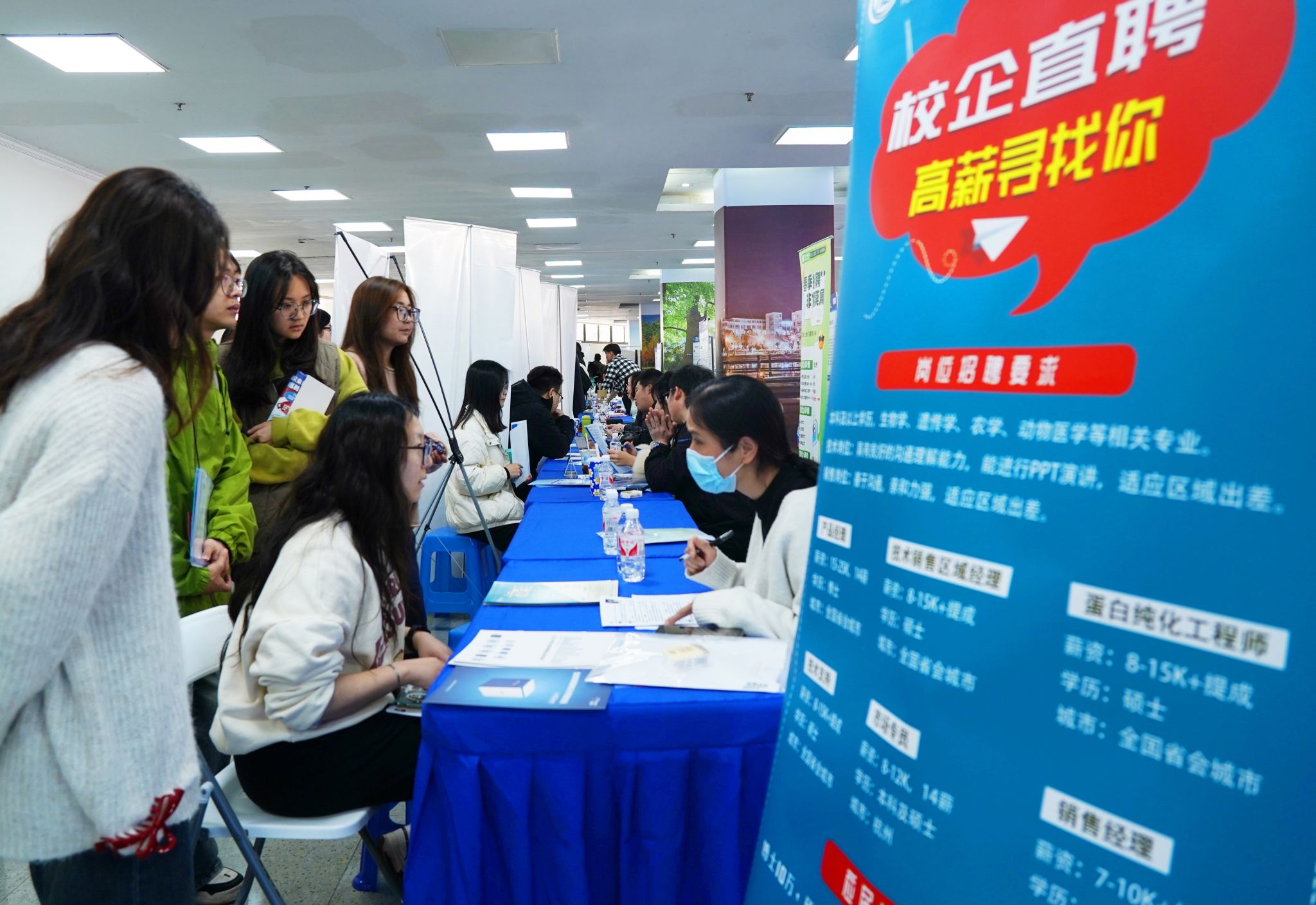 招聘會供需兩旺。本次招聘會共有199家企業推出各類崗位484個,需求人數5186人,浙江交工集團、新和成股份、千年舟新材、胡慶余堂等知名企業攜優質崗位亮相,必勝客、肯德基等連鎖品牌與上海種業集團、浙江省一建等農業建筑領域企業形成矩陣,崗位涉及人工智能、機械制造、生物制藥、動物科學、教育培訓、農林科技等各個領域,共吸引近20000人次通過線上線下關注招聘會,超過千名本碩博畢業生前來現場求職、咨詢,線上線下累計投遞簡歷8000多份,約有近1000人次初步達成意向。