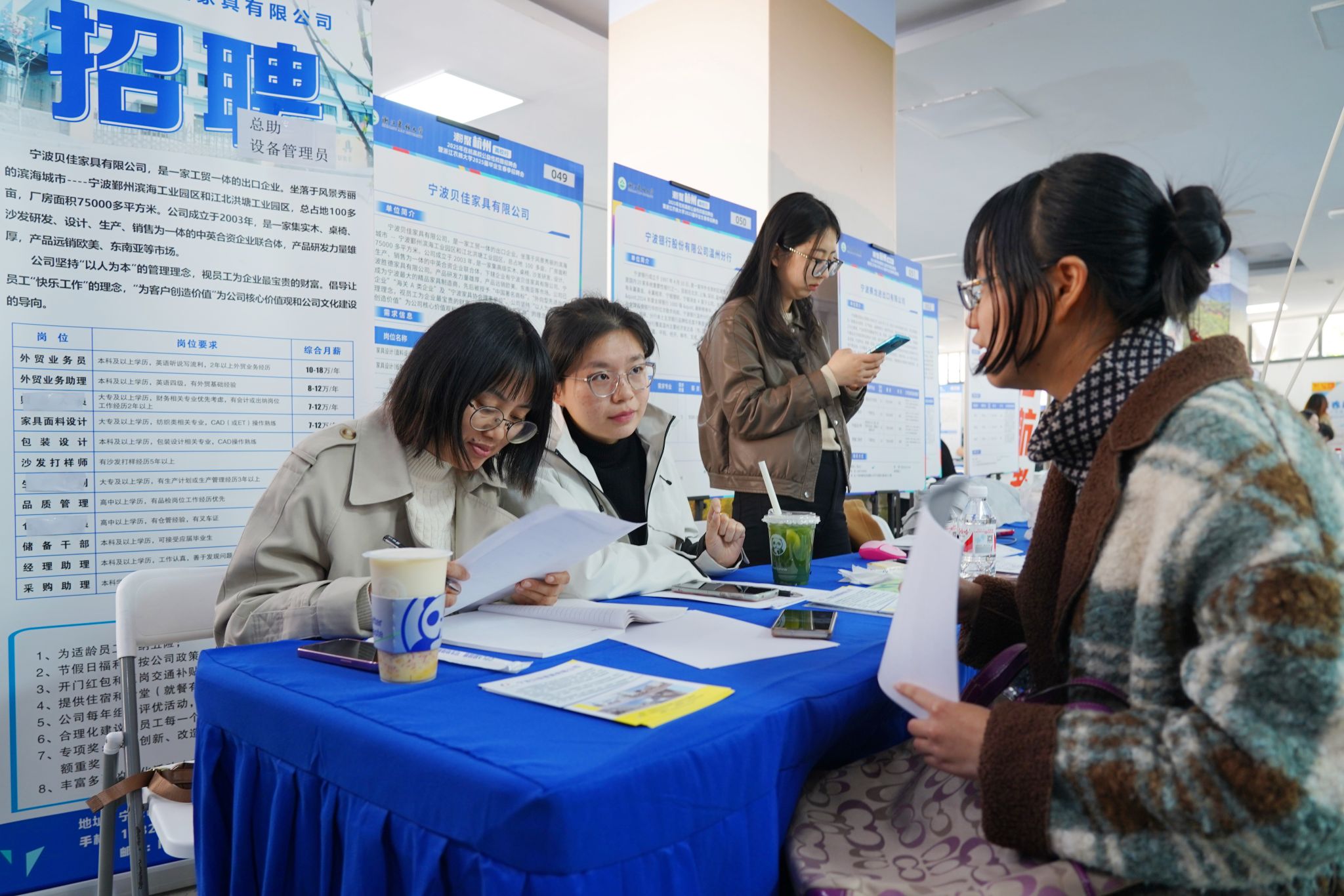 和去年年底很多招聘會上應屆畢業生以觀望為主不同,當天參加招聘會的不少畢業生都體現出很高的就業意愿。“現在研究生分數都已經出來了,我的成績不太理想,可能更適合就業,所以我就是奔著就業的目的來的。現在大學生畢業生一年比一年多,就業市場非常卷,所以我覺得只要確實適合自己,就會簽訂就業意向。”浙江農林大學應屆畢業生小周表示,自己去年一門心思準備考研,現在讀研無望,所以就業成了必然選擇。雖然這是自己第一次參加招聘會,但是現場的不少企業都不錯,如果確實有自己滿意的工作,會考慮現場簽約就業。