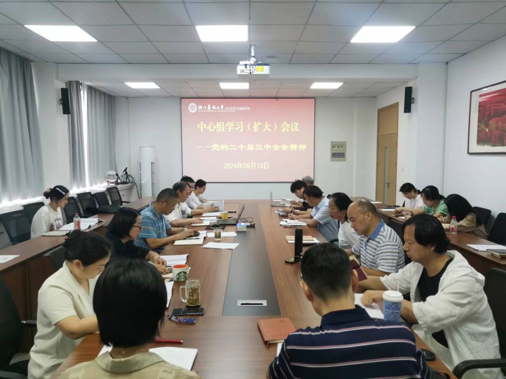 8月13日,文法學(xué)院在衣錦實驗樓612會議室召開中心組學(xué)習(xí)擴大會議,專題學(xué)習(xí)黨的二十屆三中全會精神。學(xué)院中心組成員、師生黨支部書記、群團部門負(fù)責(zé)人參加學(xué)習(xí)會。文法學(xué)院黨委書記朱紅東主持學(xué)習(xí)會。