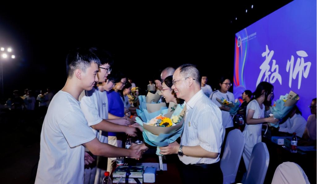 現(xiàn)場,新生代表們?yōu)楝F(xiàn)場老師們贈(zèng)送獻(xiàn)花,老師們也為新生贈(zèng)送“新生禮”。在雅風(fēng)院藝術(shù)團(tuán)同學(xué)們領(lǐng)唱的《浙江農(nóng)林大學(xué)校歌》中,經(jīng)濟(jì)管理學(xué)院2024級開學(xué)典禮落下帷幕。