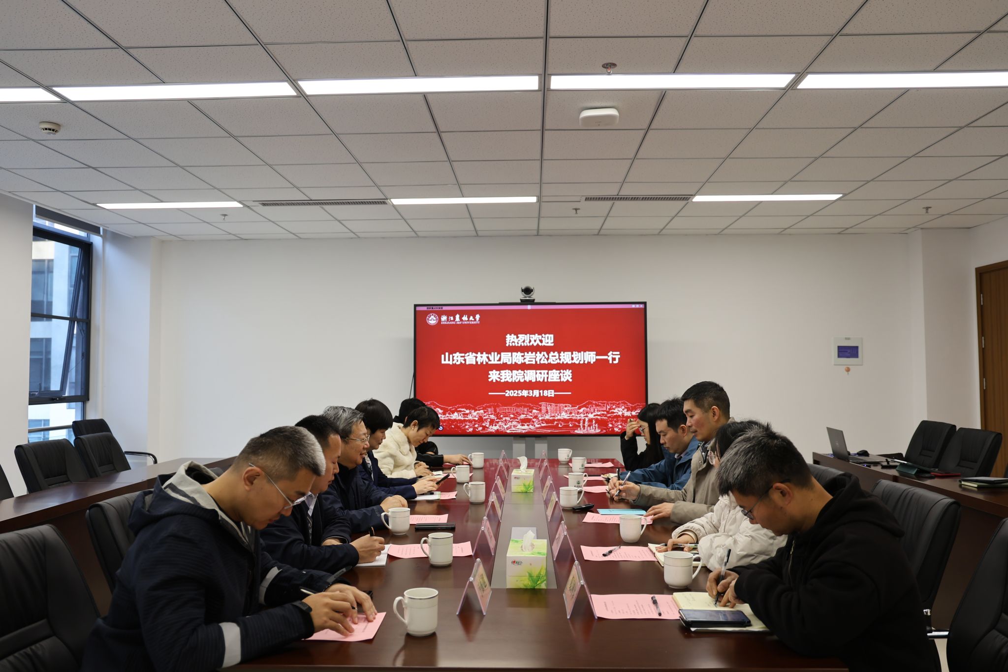 3月18日,山東省自然資源廳總規劃師陳巖松帶隊到林生院調研交流,浙江省林技推廣總站相關負責人、林生院香榧、山核桃團隊教師參加座談會。