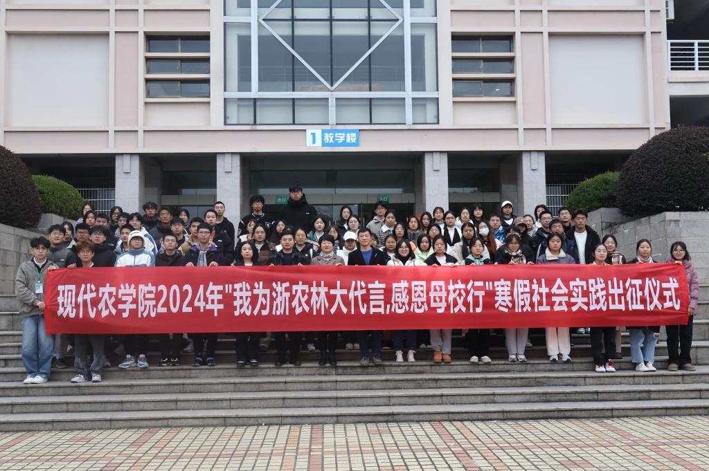 1月8日,農學院于教1-201舉行2024年“我為浙農林大代言,感恩母校行”寒假社會實踐出征儀式。農學院相關負責人、全體輔導員和各實踐團成員代表參加儀式。