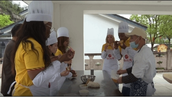 留學(xué)生們來(lái)到仙都景區(qū)的縉云燒餅培訓(xùn)中心,學(xué)習(xí)了縉云燒餅的歷史故事及相關(guān)知識(shí),在培訓(xùn)師的指導(dǎo)下開(kāi)始縉云燒餅制作體驗(yàn),邊體驗(yàn),邊和老師互動(dòng)交流,讓他們深切感受到縉云傳統(tǒng)美食的魅力,以及縉云飲食文化的濃郁特色。