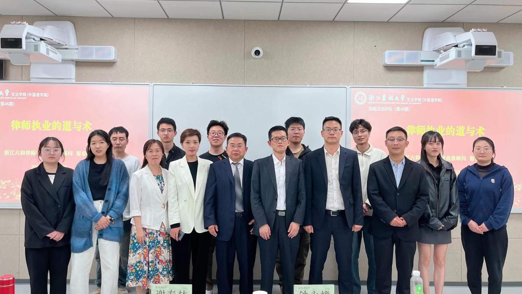 4月25日,文法學(xué)院舉辦第46期“吳越法治講壇”,特邀浙江六和律師事務(wù)所高級(jí)顧問(wèn)謝春林律師和鐘永樟律師作學(xué)術(shù)報(bào)告。法學(xué)學(xué)科教師參加報(bào)告會(huì),文法學(xué)院相關(guān)負(fù)責(zé)人主持報(bào)告會(huì)。