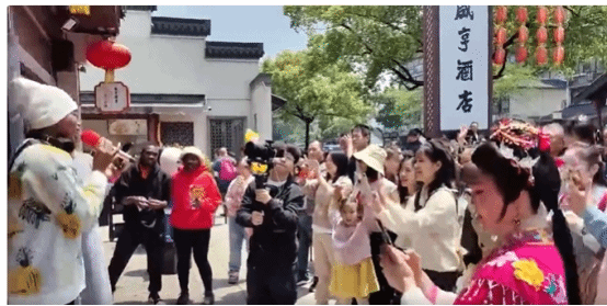留學生還在黃酒小鎮觀婚禮、逛市集、乘烏篷船、聽戲曲,與“全皇后”扮演者合照留念。