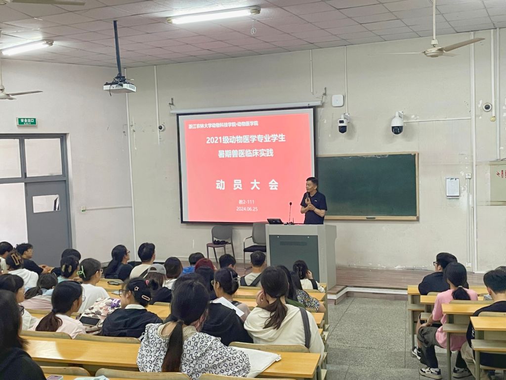 會上,實(shí)習(xí)指導(dǎo)教師介紹了實(shí)習(xí)目的、具體安排和注意事項(xiàng),并重點(diǎn)強(qiáng)調(diào)實(shí)習(xí)過程中的安全問題,分享了學(xué)院往屆學(xué)生踐行浙農(nóng)林大人的“三干”品質(zhì),為學(xué)院增光添彩的故事。在接下來長達(dá)兩個月的暑假,同學(xué)們將被分配到不同實(shí)習(xí)單位,通過實(shí)習(xí)進(jìn)一步增強(qiáng)對專業(yè)的認(rèn)知,鍛煉獨(dú)立處理獸醫(yī)臨床實(shí)際問題的能力。同學(xué)們紛紛表示,將珍惜實(shí)習(xí)機(jī)會,自覺遵守紀(jì)律,虛心勤學(xué)苦練,勇于擔(dān)當(dāng)盡責(zé),爭取以優(yōu)異成績完成由實(shí)習(xí)學(xué)生到企業(yè)員工的“角色轉(zhuǎn)換”。