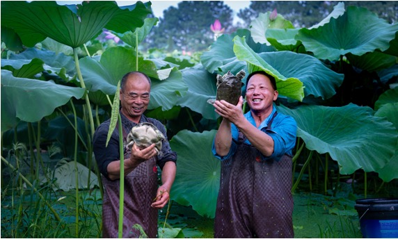 實(shí)現(xiàn)鄉(xiāng)村振興,必須走出一條立足鄉(xiāng)村的綠色可持續(xù)發(fā)展道路。經(jīng)過(guò)系列調(diào)研和走訪(fǎng),方泳提出了因地制宜發(fā)展“高效生態(tài)農(nóng)業(yè)”的理念,并著手實(shí)施了一系列創(chuàng)新措施。通過(guò)與多所高等院校合作開(kāi)展農(nóng)業(yè)產(chǎn)學(xué)研一體化項(xiàng)目,打造了“共富工坊”,推出了“運(yùn)河鮮米”、“荷塘甲魚(yú)”、“荷葉茶”等特色農(nóng)產(chǎn)品品牌,同時(shí)積極發(fā)展生態(tài)旅游和農(nóng)耕文化體驗(yàn)活動(dòng),利用直播平臺(tái)推廣鄉(xiāng)村文化,吸引更多年輕人參與到鄉(xiāng)村建設(shè)中來(lái)。