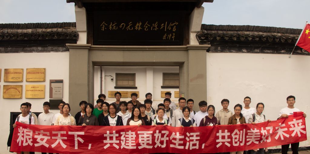 隨后,學(xué)院一行來到余杭中心庫。為體驗(yàn)最真實(shí)的糧儲(chǔ)日常工作、了解實(shí)用的儲(chǔ)糧知識(shí),同學(xué)們戴上安全帽,走進(jìn)糧庫,了解糧庫管理、運(yùn)行的機(jī)制,各類儀器儀表的用途、工作原理和操作方式,更充分地理解了“藏糧于地”和“藏糧于技”的深刻內(nèi)涵。