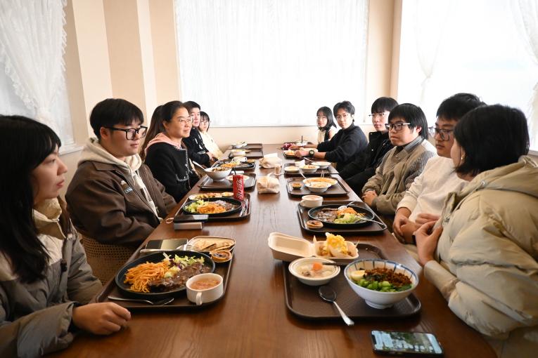 在享用午餐的輕松氛圍中,同學們暢所欲言,圍繞專業教學、軟硬件設施改造和校園環境等方面提出了相關的意見和建議,并分享了在學習、生活中遇到的問題和困難和自身的未來職業規劃。黃曉芳認真聆聽每位同學的所想所言,并耐心地給予答復,她表示,針對以上問題,學院將積極做出調整和反饋,并將持續關注學院學生生活、學業、身心健康情況,為同學們營造便利、良好的學習氛圍。她鼓勵在座的同學們將課內、課外學習相結合,在實踐中磨礪專業技能,積極將所聞所見變為所學所得,把握機會,不斷成長。