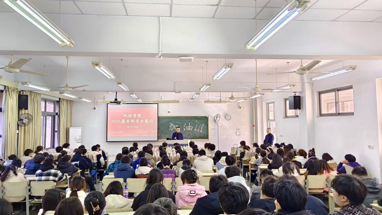 11月28日,化材學院開展了2025屆畢業生考研考公慰問活動。學院黨委書記潘國忠、學院相關負責人、畢業班輔導員為200余名考研考公學子送去“能量加油包”和溫暖祝福。