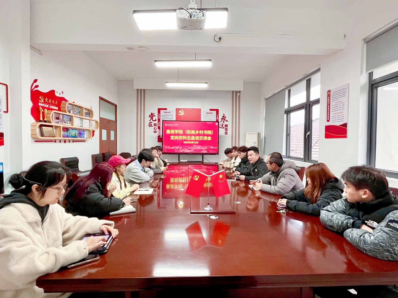 學院相關負責人還向定向農科生代表們介紹了集賢學院與地方基層黨組織進行的黨建聯建計劃,盡一切力量為定向農科生“搭平臺、架梯子、建橋梁”,助力他們提前深入“三農”一線場景,熟悉領導同事、熟悉工作環境,向基層干部學習、向鄉村群眾學習,為今后更好服務省域鄉村振興事業打下堅實基礎。