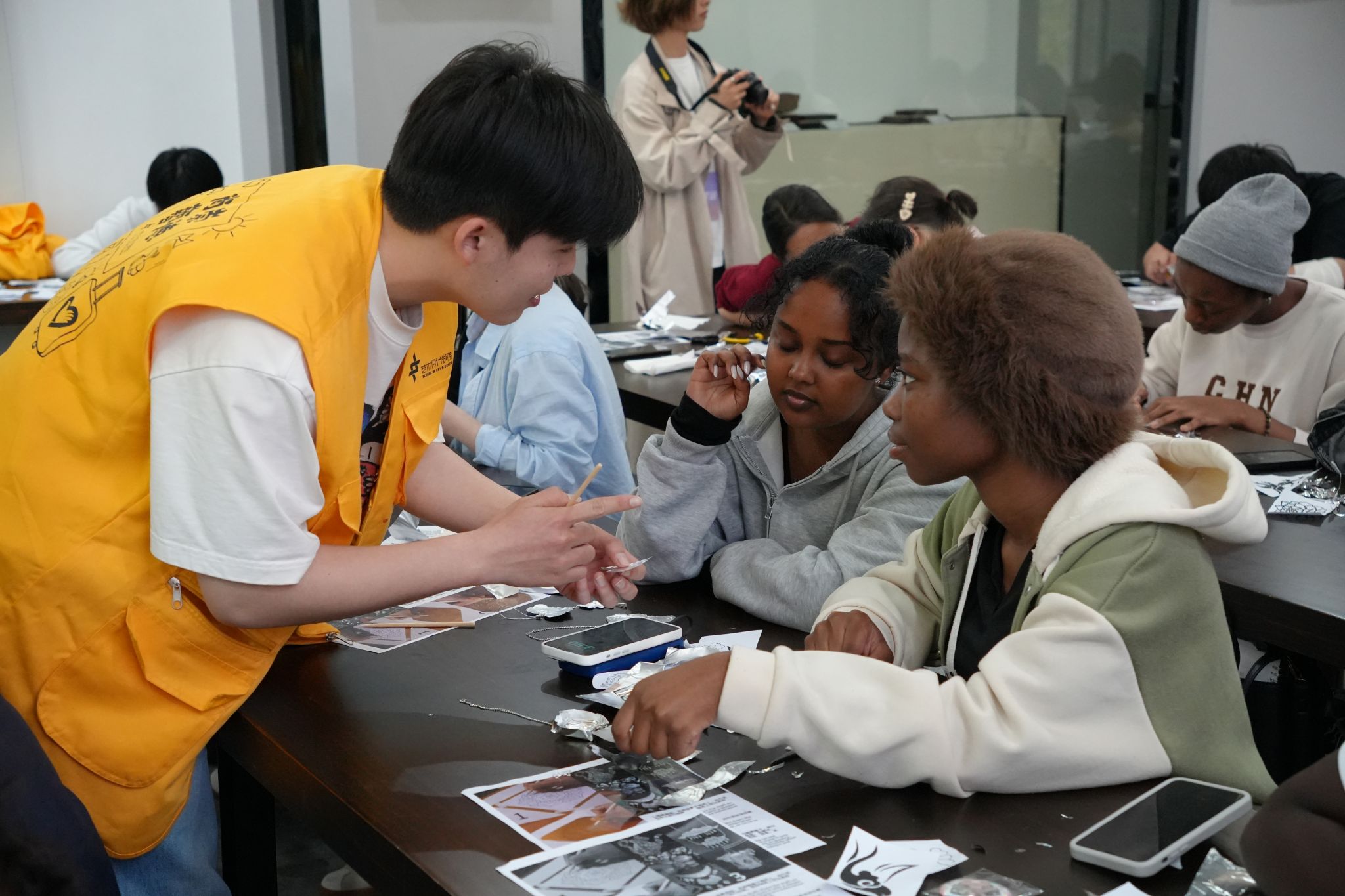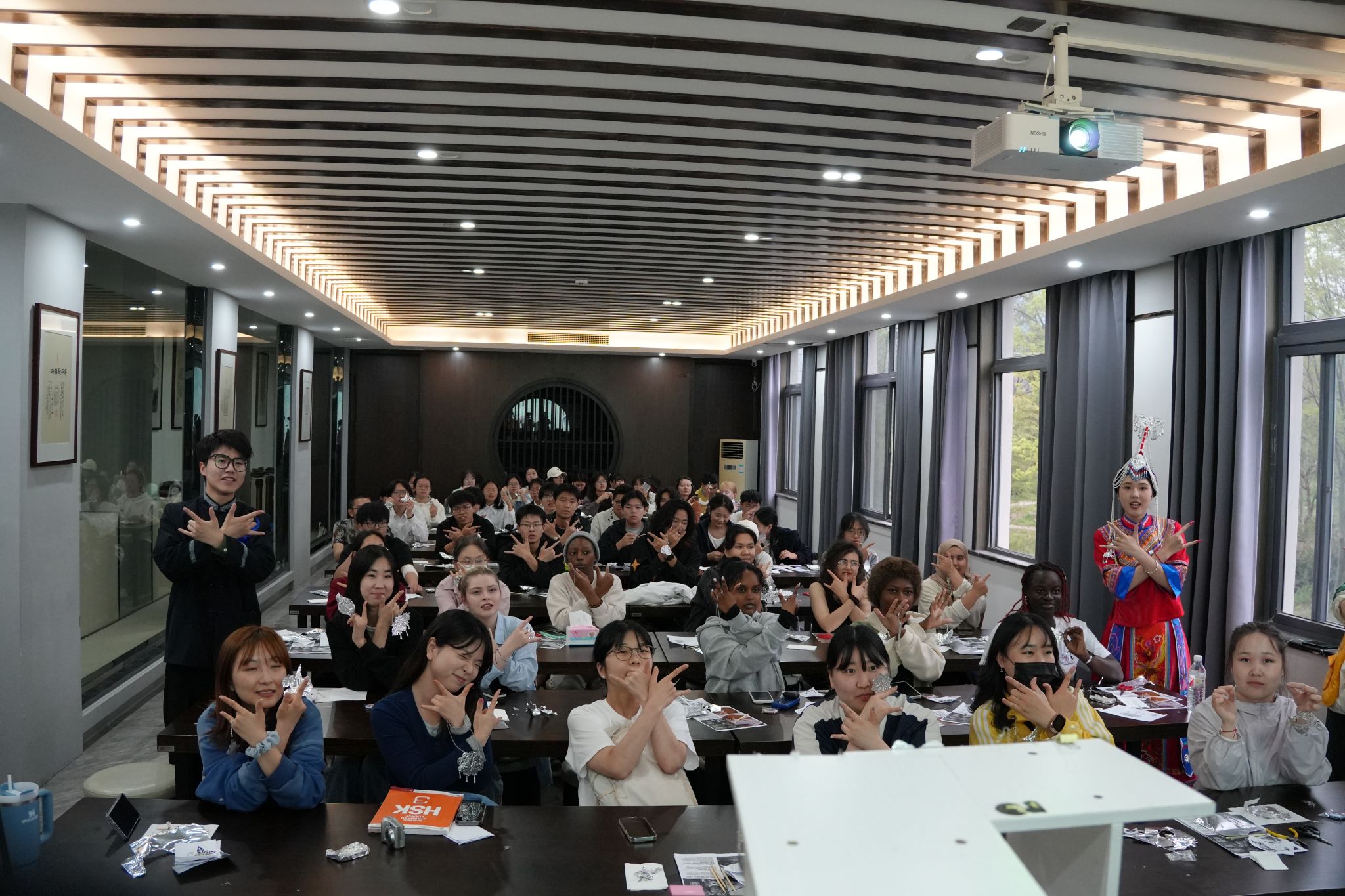3月27日下午,由藝術(shù)學(xué)院、國(guó)教學(xué)院主辦,藝術(shù)學(xué)院團(tuán)委、學(xué)院畬韻非遺文化傳承團(tuán)隊(duì)承辦的“感知中國(guó)”畬族非遺特色彩虹課堂活動(dòng)在學(xué)5305舉行,活動(dòng)吸引了80名中外學(xué)生參加,在錫紙與銀飾藝術(shù)的碰撞中,完成了一場(chǎng)跨越千年、聯(lián)結(jié)中外的文化對(duì)話。
