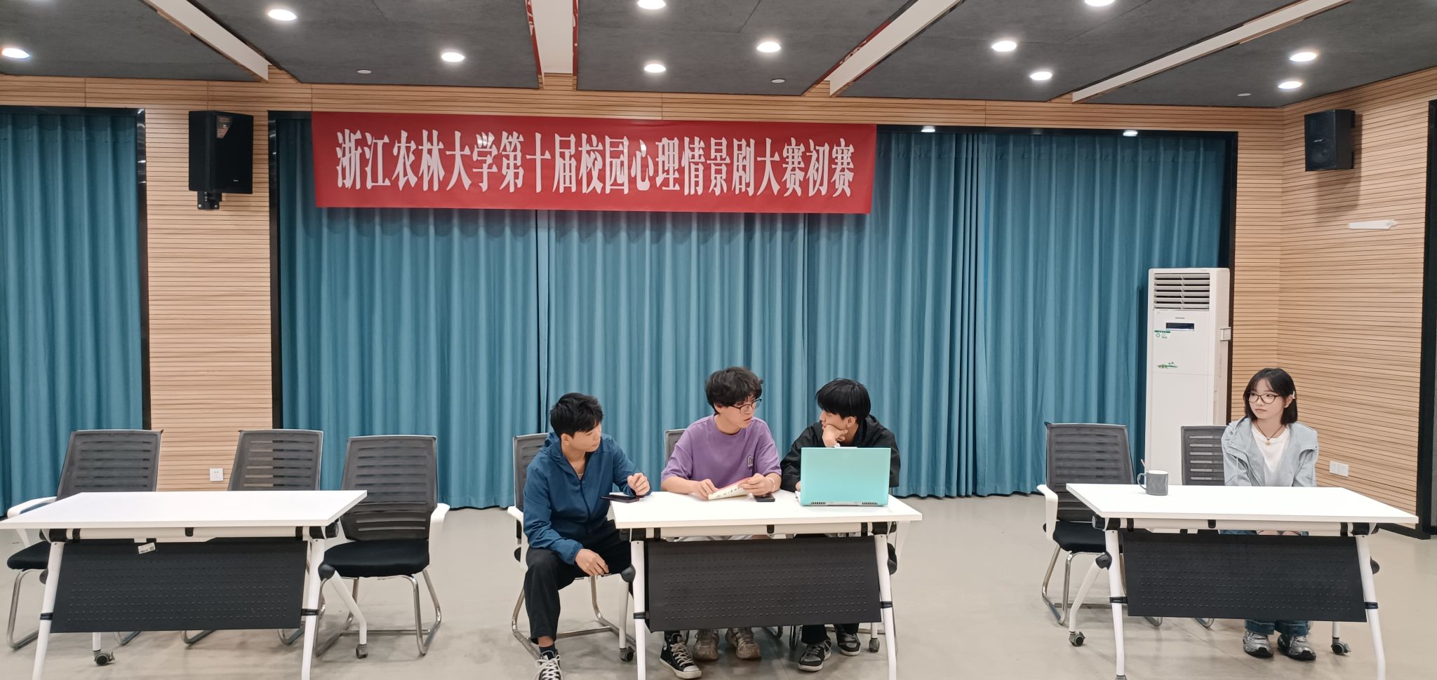4月24日,由學(xué)工部主辦,心理健康教育中心和環(huán)資院心理健康輔導(dǎo)站承辦的第十屆校園心理情景劇大賽初賽在東湖校區(qū)活動(dòng)中心舉行。