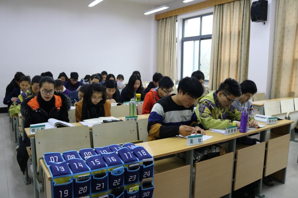 學院深入推進“無手機課堂”,實現了學生桌簽和手機袋有機結合,即每位學生找到放有自己桌簽的手機袋,用手機替換出桌簽,并將桌簽放置于自己座位前。學生桌簽的運用,為“文明課堂”添磚加瓦,使同學們有了更強的主體參與感,同時也實現了自我監督,為任課老師課堂管理和熟悉學生提供更大便利。