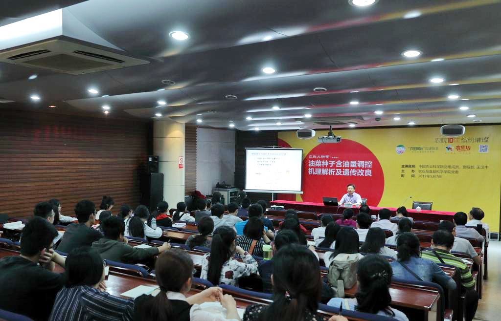 5月7日下午,中國農業科學院黨組成員、副院長王漢中研究員作客農學院“農欣大講堂”,作了題為《油菜種子含油量調控機理解析及遺傳改良》的學術報告,拉開了學院十周年院慶活動“學術季”的序幕。中國工程院院士喻樹迅出席報告會。報告會由院長朱祝軍主持。