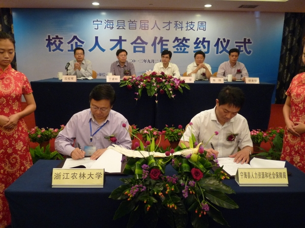 浙農林大新聞網訊 為推進我校研究生就業創業工作,建立研究生就業創業平臺,同時進一步暢通寧??h高層次人才引進渠道,9月23日,研究生處處長童再康帶領相關工作人員參加寧??h首屆人才科技周,與寧海縣人力社保局簽訂“共建研究生工作站協議”。