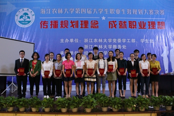 浙農林大新聞網訊 9月22日下午,校第四屆大學生職業生涯規劃大賽決賽在東湖校區圖書館第一報告廳舉行。本次大賽由學生處和教務處主辦,經濟管理學院承辦,并得到了浙江聯譽實業有限公司大力支持。校黨委學工部部長、學生處處長繆魯加、保衛處處長馬小輝、浙江大學人事處副處長朱慧、浙江經貿職業技術學院招生辦主任姚華兒以及教務處、各二級學院相關負責人出席活動。