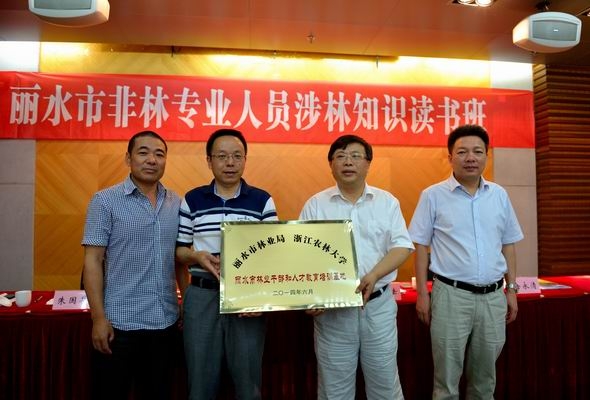 浙農林大新聞網訊 6月9日上午,麗水市林業干部和人才教育培訓基地授牌暨麗水市非林專業人員涉林知識讀書班開班儀式在我校活動中心202室舉行。麗水市林業局總工丁麗惠,麗水市林業局林業技術推廣總站站長朱國華,繼教學院院長朱永法等出席開班儀式,參加儀式的還有麗水市各縣(市、區)林業系統非林專業干部或事業單位專業技術人員58人,開班儀式由朱國華主持。