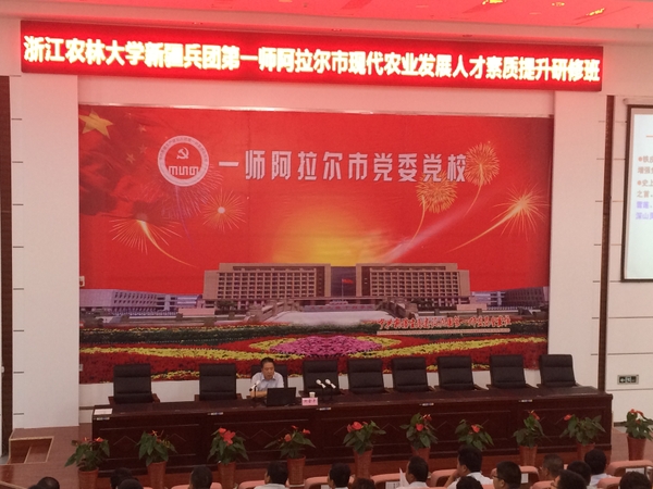 在第一師黨校學術報告廳舉行的“浙江農林大學新疆兵團第一師阿拉爾市現代農業發展人才素質提升研修班”開班式上,第一師分管領導、黨校領導及臺州援疆指揮部的領導共同參加了開班式。我校5名專家分別對來自全師各團場200余名農業科技干部進行了為期4天的專業培訓。