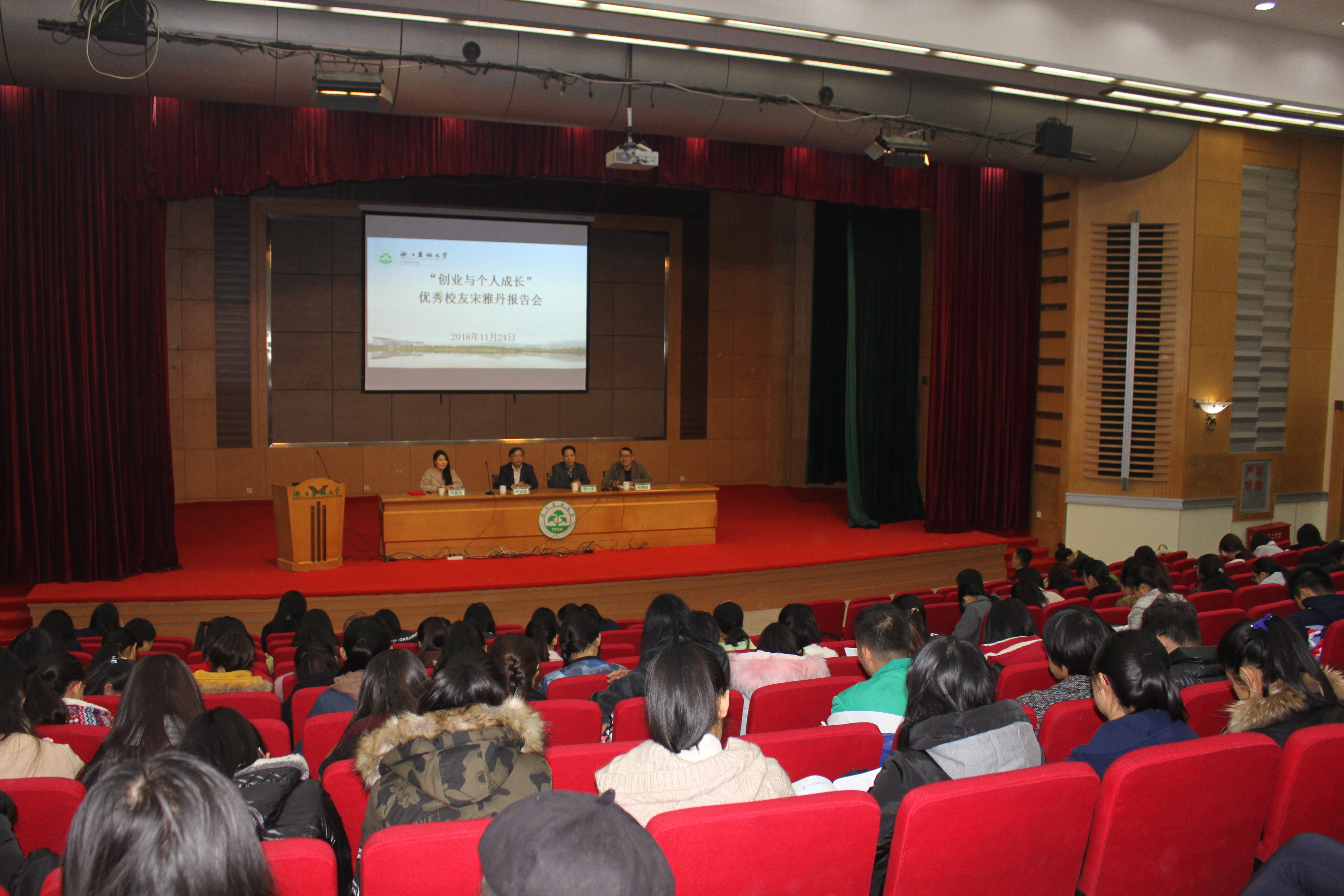 11月24日下午,我校第九期創業論壇在衣錦校區報告廳舉行,05級室內與家具設計專業畢業生宋雅丹應邀作“創業與個人成長”主題報告。創業處處長朱永法、外語學院黨總支書記張敏生出席此次報告會,外語學院教職工和全體學生參加本次報告會。