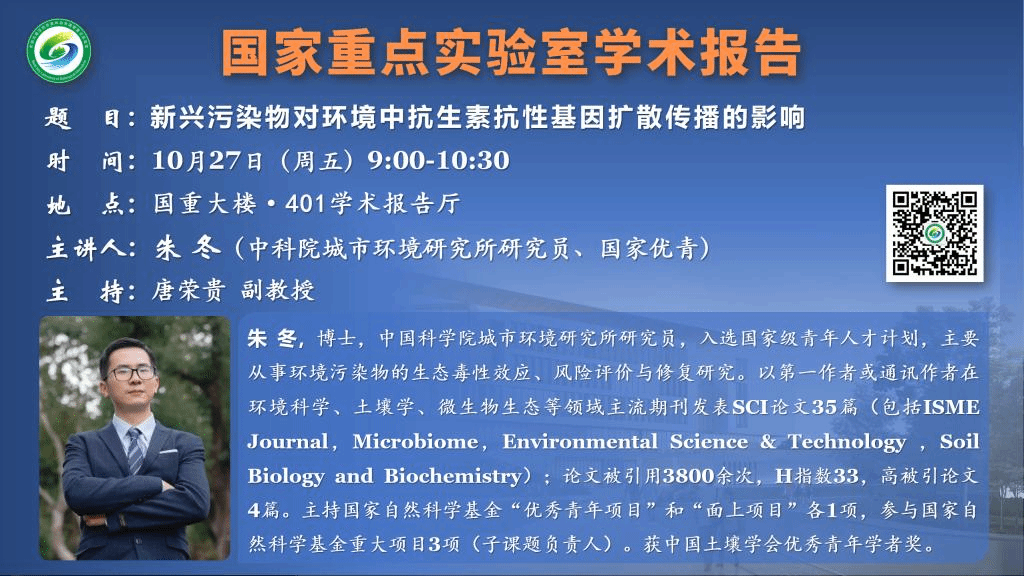 講座預告:新興污染物對環境中抗生素抗性基因擴散傳播的影響