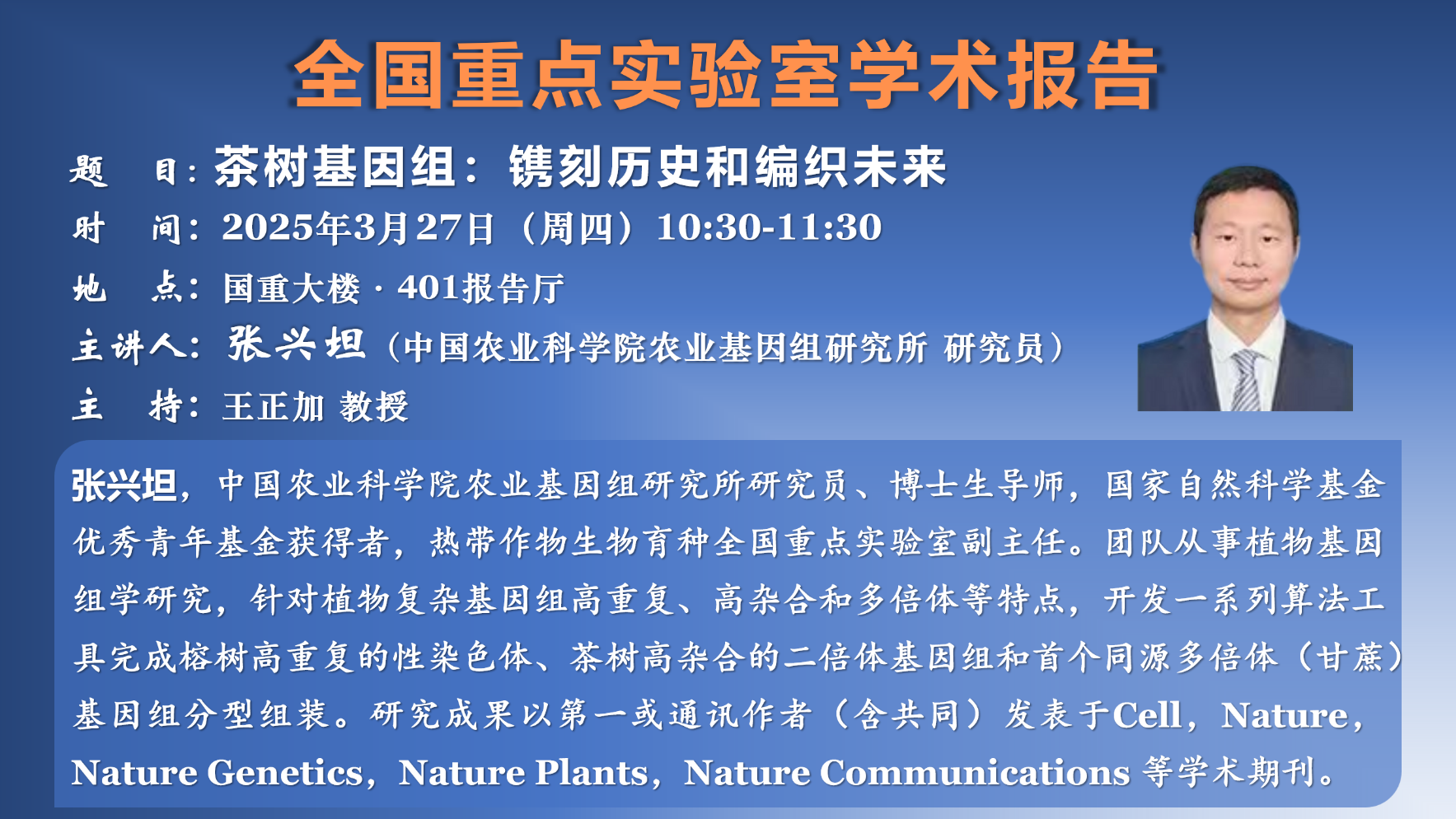 講座預告:茶樹基因組:鐫刻歷史和編織未來