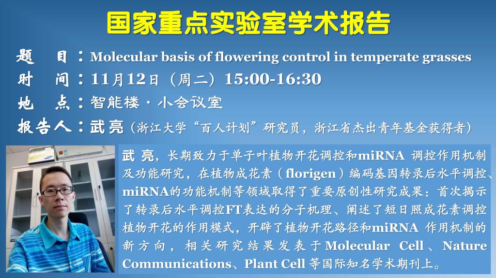 學術報告:Molecular basis of flowering control in temperate grasses
