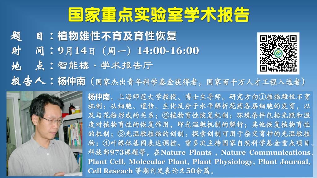 國家重點實驗室學術報告:植物雄性不育及育性恢復